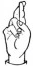 На ћирилици написано ХАНА БЕКОЊА састоји се из 10 слова [?]. Исписано ћириличном једноручном азбуком за глувонеме: